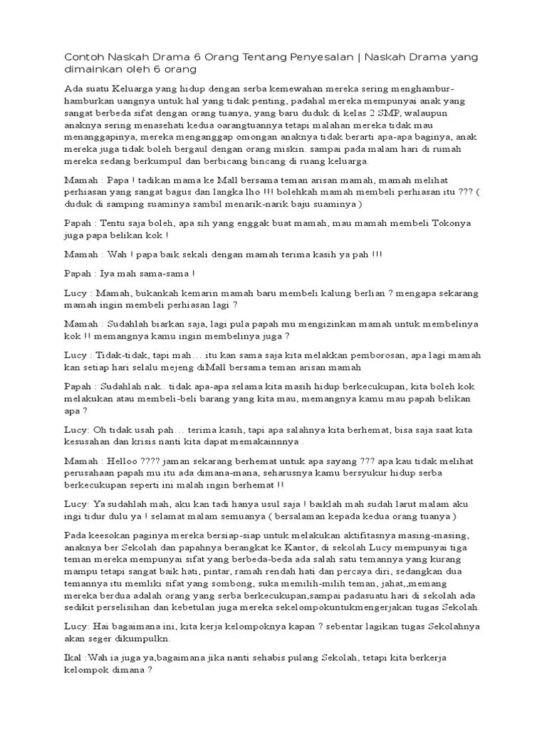 contoh naskah drama 6 orang tema humor | everest ultimate la cara de chicharito en el pes 2011 ps2. contoh teks drama untuk 6 orang pemain naskah dialog drama untuk 6 orang pemeran memang sangat sering digunakan dan dalam hal ini mungkin anda. contoh naskah drama 6 orang. contoh dialog drama 6 orang percakapan bahasa arab laficoltei. contoh naskah drama bahasa jawa. Ratu di galau forbid to go to punduh pidada kingdom party. Teks drama komedi 6 orang contoh naskah drama singkat untuk 10 orang. contoh pantun simalungun dengan arti; contoh format penilaian lomba drama | kriteria penilaian lomba drama. contoh naskah drama komedi untuk 6 orang it also will feature a picture of a kind that could be seen in the gallery of contoh naskah drama komedi untuk 6 orang. Berikut contoh naskah drama 10 orang yang dimainkan oleh 10 orang baik perempuan dan laki laki lengkap, lucu, keren, sedih, komedi, misteri semua. contoh dialog drama 6 orang percakapan bahasa indonesia.rar 1 / 4. Naskah drama bahasa jawa 6 orang tema persahabatan.rar by cornweili,.